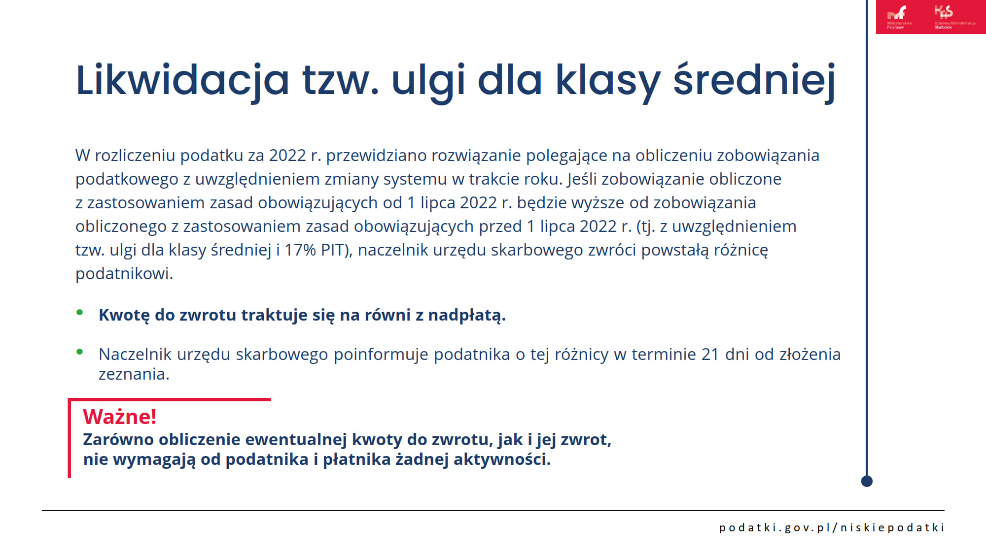 Więcej informacji na temat zmian, m.in. dotyczących ulg podatkowych i form opodatkowania dochodów (przychodów) osiągniętych w 2022 r. oraz pytania i odpowiedzi znajdziesz w przewodniku Niskie podatki.