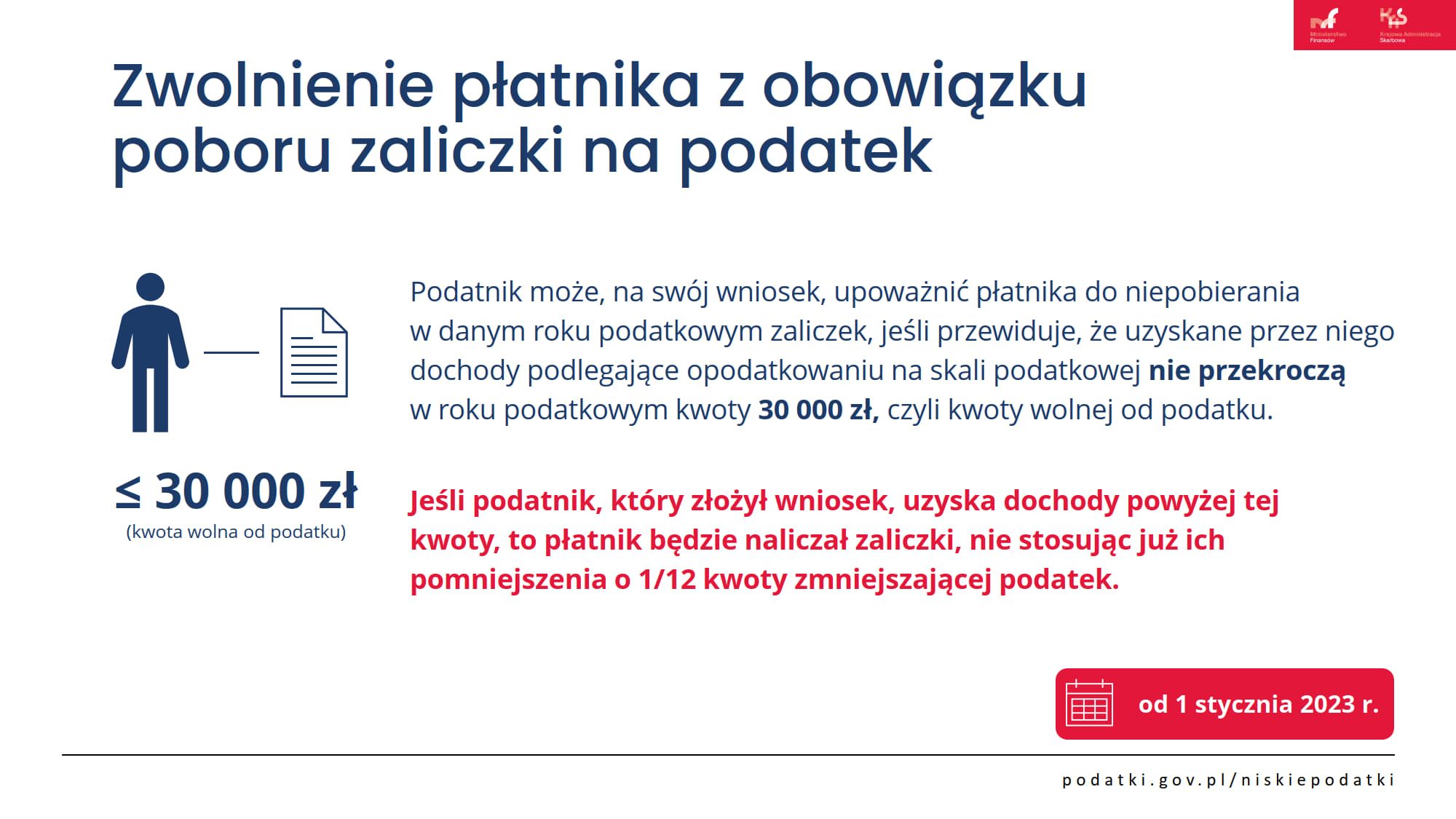 Zwolnienie płatnika z obowiązku poboru zaliczki na podatek od 1 stycznia 2023r.