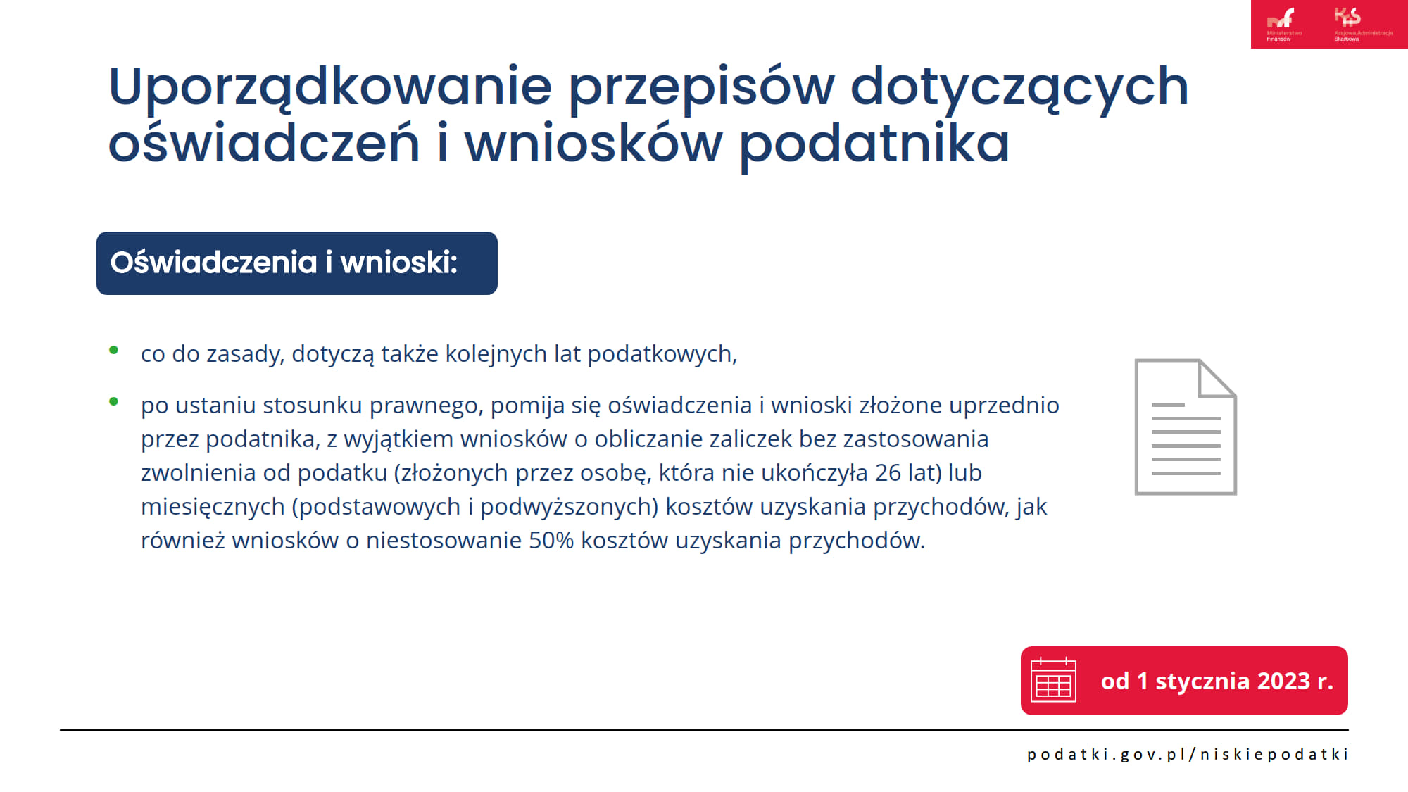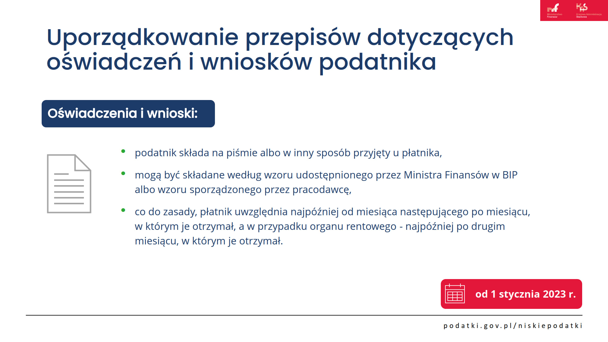 Oświadczenia i wnioski podatnika od 1 stycznia 2023r.