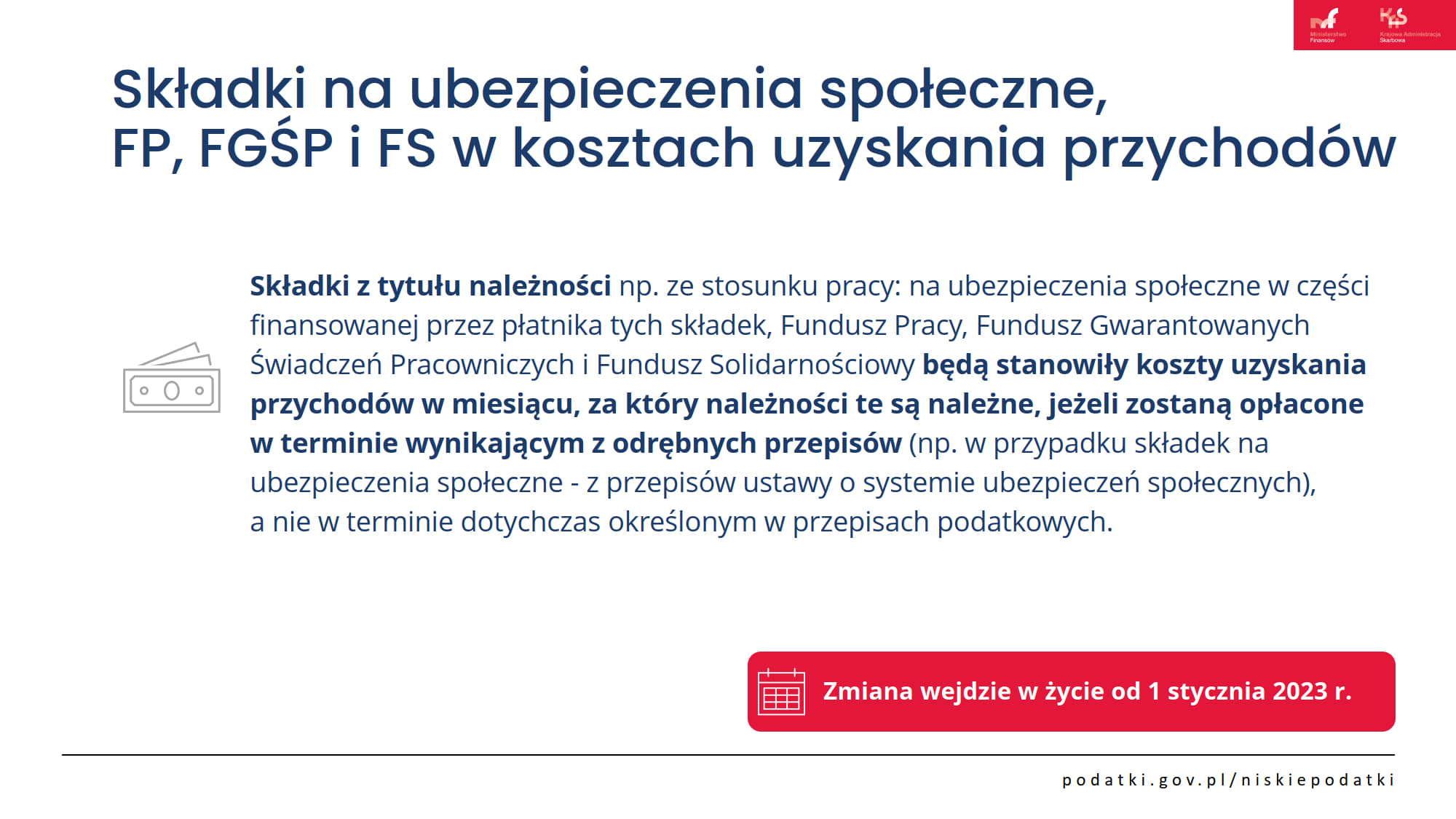 Składki na ubezpieczenie społeczne, FP, FGŚP i FS w KUP od 1 stycznia 2023r.